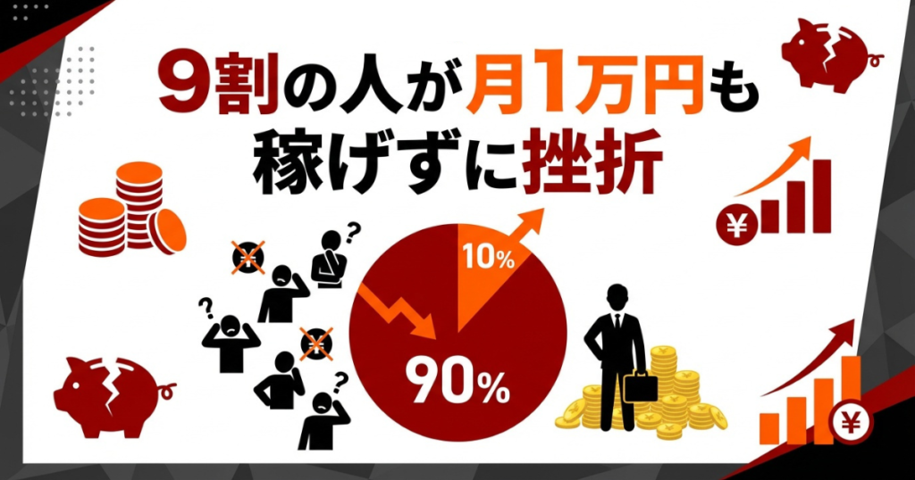 ただ、9割の人は月1万円も稼げずに挫折してます。