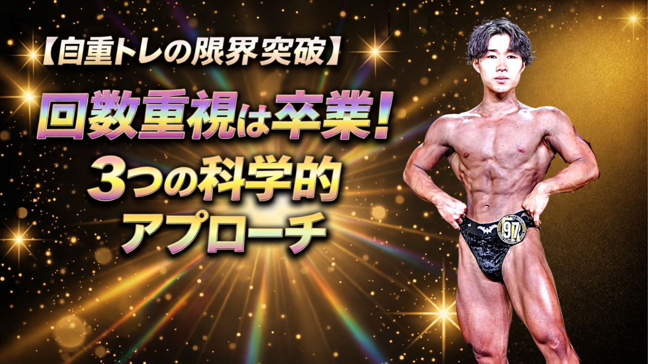 サマースタイルアワード初大会で優勝 / 日本大会TOP8 トレーナー 山品 そら 「ガリガリから日本トップランカーへ。初心者でも分かる『効かせる』指導が得意です。」 Instagramでボディメイクのコツを見る 「腕立て伏せが50回できるようになったけど、体が大きくならない…」「自宅トレだけじゃ、これ以上マッチョになるのは無理なのかな?」トレーニングを始めて半年。最初は筋肉痛が来ていたのに、最近はただの「作業」になっていませんか?実は、筋肉を大きくする(筋肥大)ために、「回数を増やすこ... -